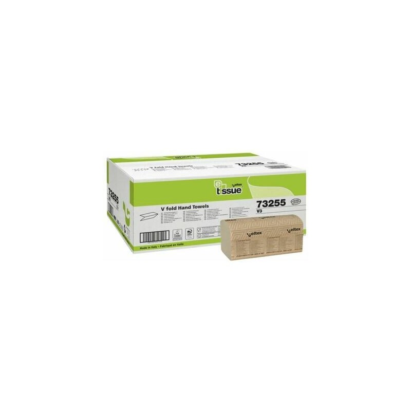 Papīra dvieļi loksnēs roku slaucīšanai, V locijums, 2 slāņi, 170 loksnes - loksnes izmēŗs : 22‒24 x 21‒27 cm, salvetes platums salocītā "V" veidā ‒ 10‒12 cm platajiem turētājiem (22‒24 cm)